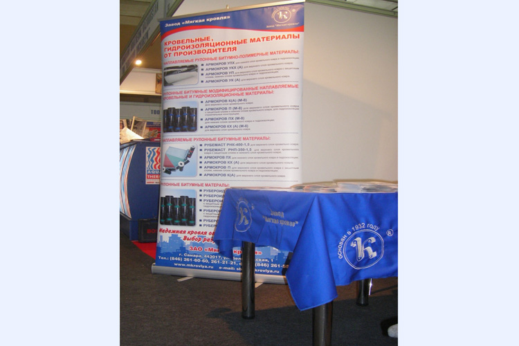 Завод «Мягкая кровля» представил на стенде образцы своей продукции: кровельные гидроизоляционные материалы марки «Рубемаст», «Армокров», рубероид. Грамотные специалисты давали исчерпывающие ответы на интересующие вопросы посетителей. По окончанию выставки ЗАО «Мягкая кровля» вручили Диплом «За производство высокого качества кровельного материала «Рубемаст».