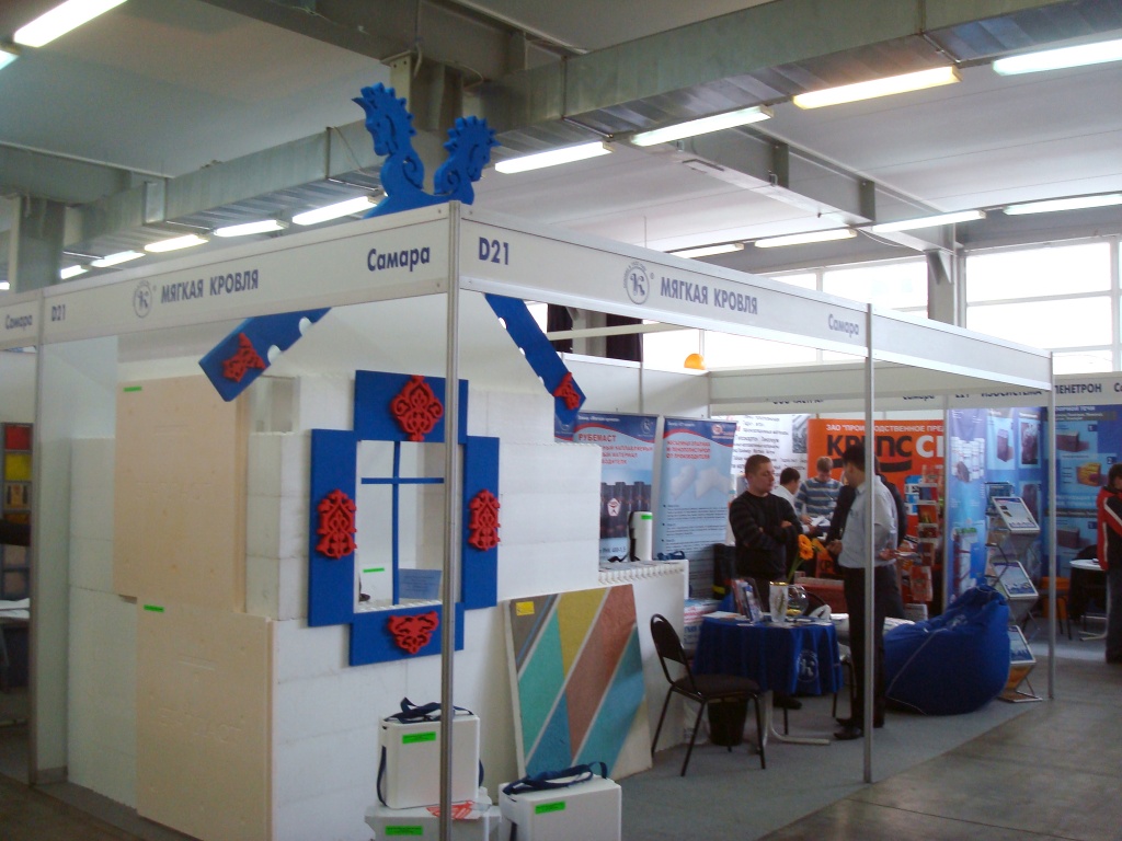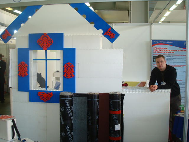 Участие в выставке «Стройиндустрия»- традиция для завода «Мягкая кровля». В этом году на стенде завода была представлена часть Теплого дома из несъемной опалубки. Всю конструкцию дома можно было посмотреть на месте, проконсультироваться со специалистами, ознакомиться с ценами на продукцию. Также были представлены образцы кровли и гидроизоляции: рулонные битумные, модифицированные наплавляемые кровли и рулонные наплавляемые материалы, а также битумы и мастики.